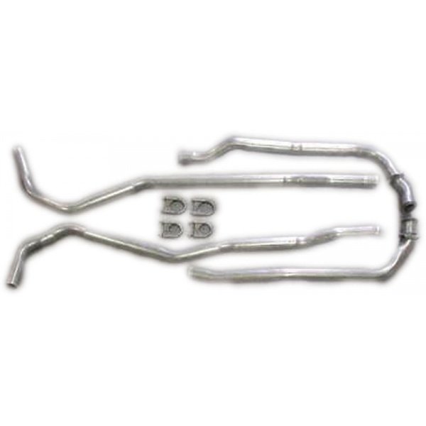 Replace your rusted-out exhaust system with our aluminized exhaust pipes. Bent to factory specifications, our aluminized pipes will last 3 times longer than the stock system. Aluminized components are made of carbon steel and coated inside and out for long life. All components are supplied with installation hardware including all necessary pipes, clamps, flanges, donut gaskets and inserts. Hangers not included.