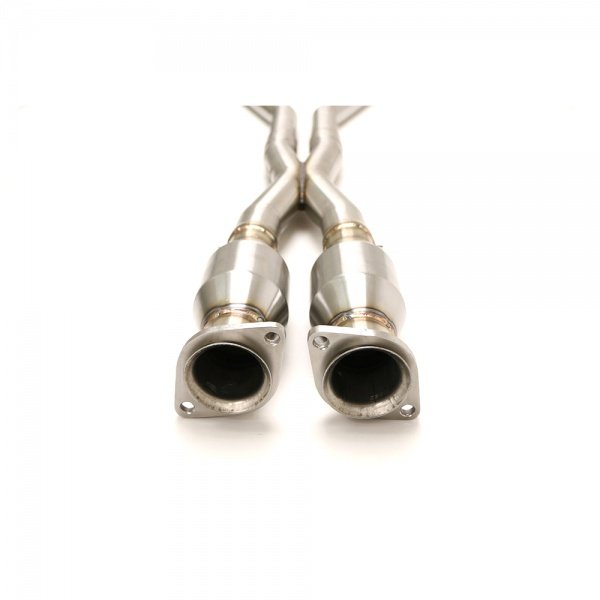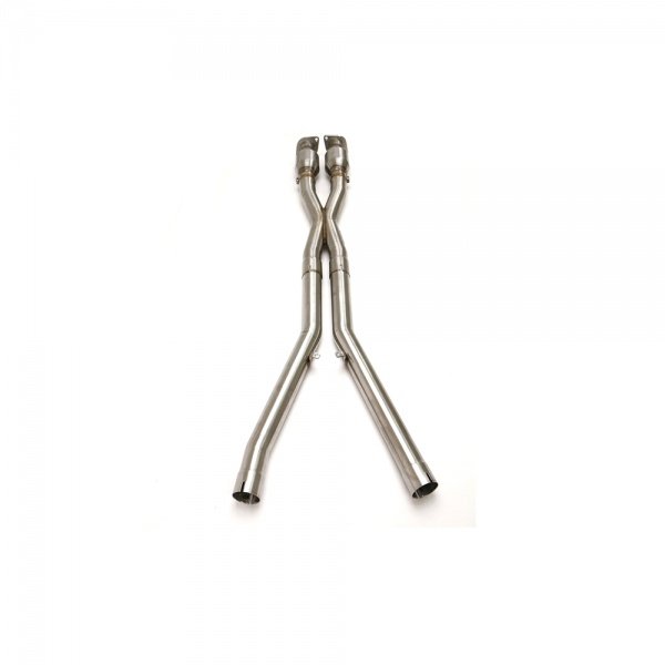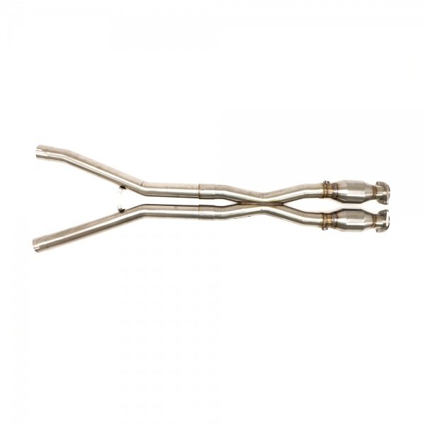 Precision hand fabricated from the finest T304 stainless steel materials this X-pipe provides a smoother transition for the exhaust pulses to blend together for better balancing a scavenging. Designed on their in house chassis dyno this bolt on part will not only increase horsepower and torque it also provides for a cleaner exhaust note. B&B also incorporated a pair of 200 cell high flow metal catalysts into this x-pipe to be used in conjunction with their long tube headers that eliminate the OE cats. As with all B&B products this part is backed by a limited lifetime manufacturer's warranty.