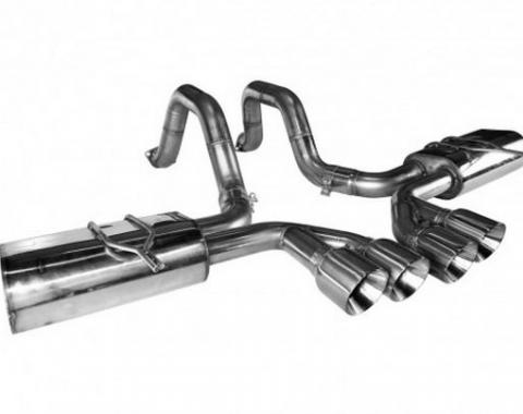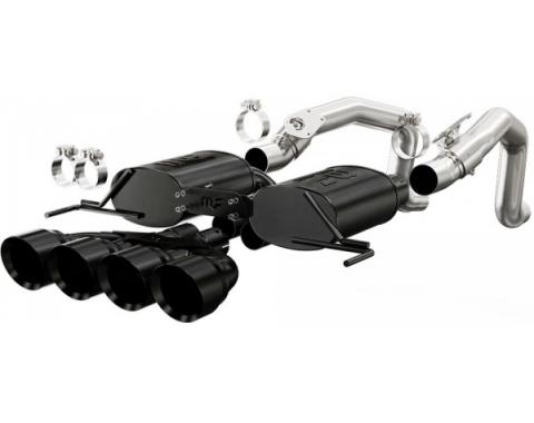 Mandrel Bent Axle Back Exhaust System, 2.5 Inch Or 3 Inch Diameters 100% T-304 Stainless Steel Construction With TIG Welds Quad 4" Black Tips & Polished Oval Multi-Core Racing Mufflers Connects To OEM Factory Connection Points Includes…