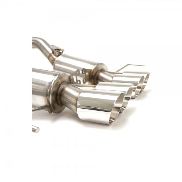 Wake up your C7 2014-2017 Corvette Stingray and give her the sound of yesterday with a B&B Bullet 3" exhaust system. The Bullet is the most aggressive performance exhaust system to be released, and has quickly become the industry standard for a deep, aggressive muscle car sound. A full 3" system, the Gen 2 version of the Bullet incorporates a smaller, yet very effective PRT resonator to help control the drone at cruising speeds. It also incorporates a exclusive 3" butterfly valve for 4 cylinder mode to provide a free flowing system that produces unmatched sound quality and performance. Manufactured from T-304 stainless steel, this system will never rust. A nice finishing touch are the quad 4" round double wall polished stainless tips. Because the entire system is covered by a limited lifetime manufacturer's warranty, you can install it and forget it.