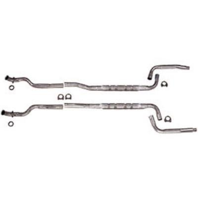 These 2.5" systems fits in the stock location with no modifications. The 1974-up systems are supplied with turn-downs similar to the stock muffler tips. The chambered sections give a deep, powerful side exhaust burble at idle and cruise speeds, easily allowing conversation or stereo listening. But when you "stand on it", your Corvette will have that great side exhaust growl! Comes with clamps and manifold gaskets. Manufactured from 14-16 gauge aluminized steel tubing.