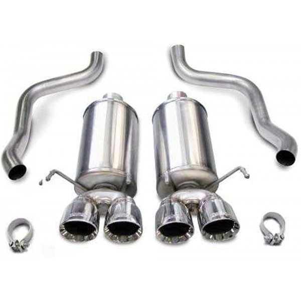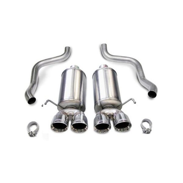 Dual Rear Exit With Twin 3-1/2" "Pro-Series" Polished Stainless Steel Double Wall Tips With CORSA Logo On Tips