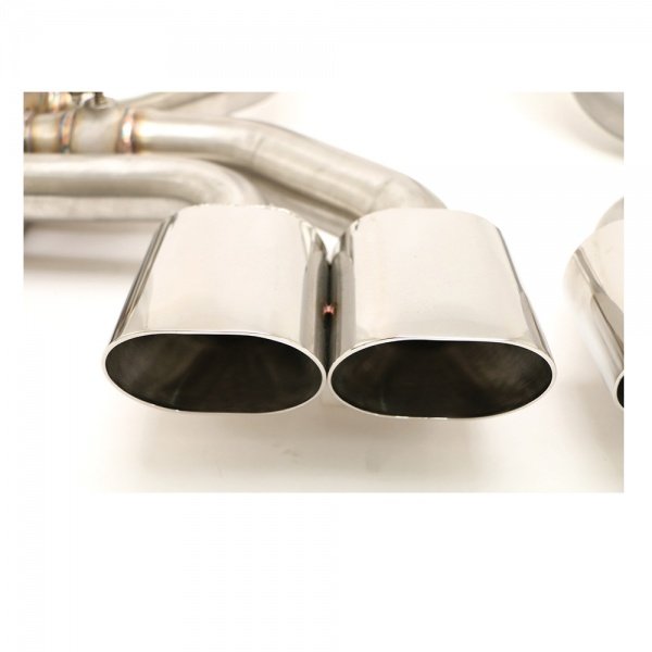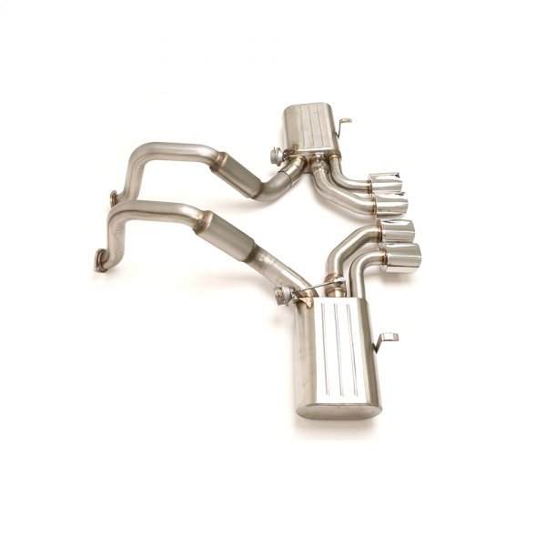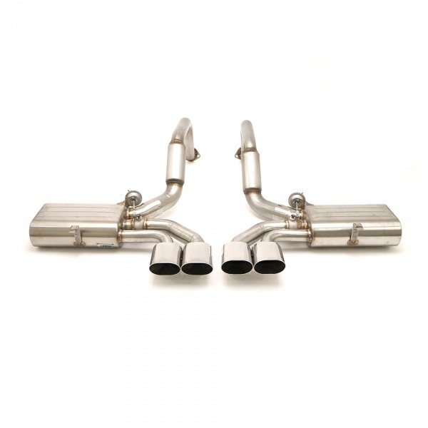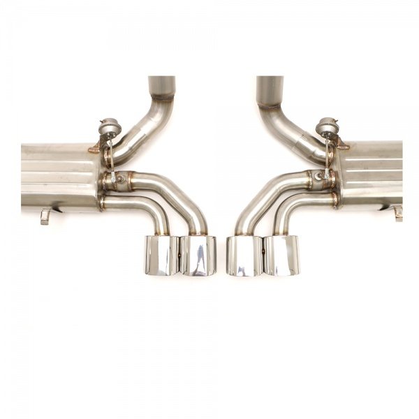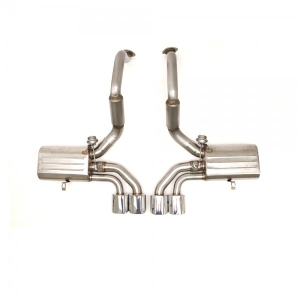 To operate this B&B developed a control kit that uses a remote key fob to open and close the valves at the push of a button. Hand fabricated using 100% T-304 stainless steel, the exhaust system is manufactured as a direct bolt-on replacement and by utilizing the factory mounting locations requires no cutting, welding, or modifications for installation and includes all mounting hardware. The control kit which is included does require vacuum lines and wiring however the kit is very do it yourself friendly. Quad 4.5” oval double wall tips give the C5 a bold and distinctive look. With unparalleled quality and attention to detail this 50 state emissions legal system is backed with B&B's limited lifetime manufacturer's warranty.