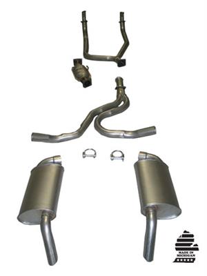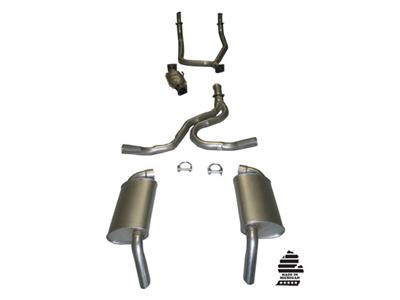 Hangers not included. Exhaust system components are made from 14 gauge (.070) aluminized pipe. Exhaust system comes with the "Hideaway" Mufflers as from the factory.