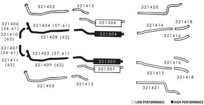 321605 1957-1962 Hi-Performance Front Exhaust 2"