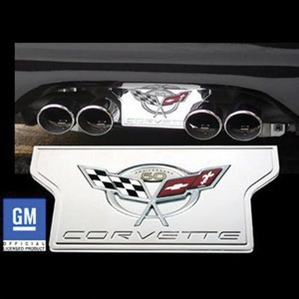 Corvette Exhaust Filler Plate, Chrome Plated Billet Aluminum With 50th Anniversary Logo, 2003: