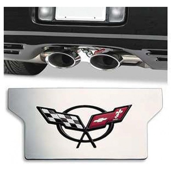 This inexpensive but high quality exhaust plate will enhance the look of the rear of your C5. Fits perfectly between exhaust pipes to dress up the blank space. Made of high quality Stainless Steel & comes with colored C-5 Logo. Simple peel & stick installation.