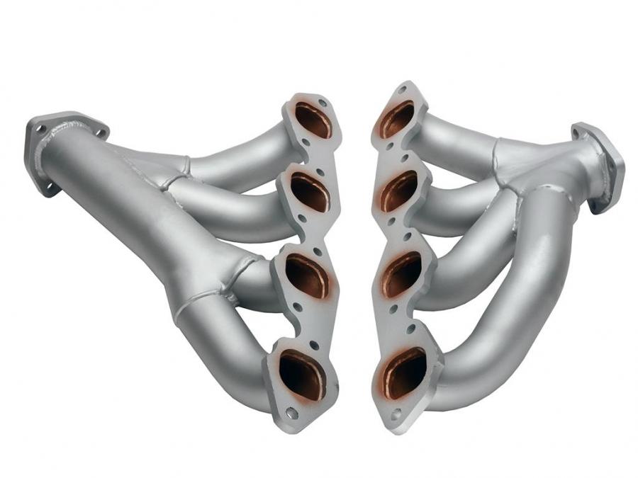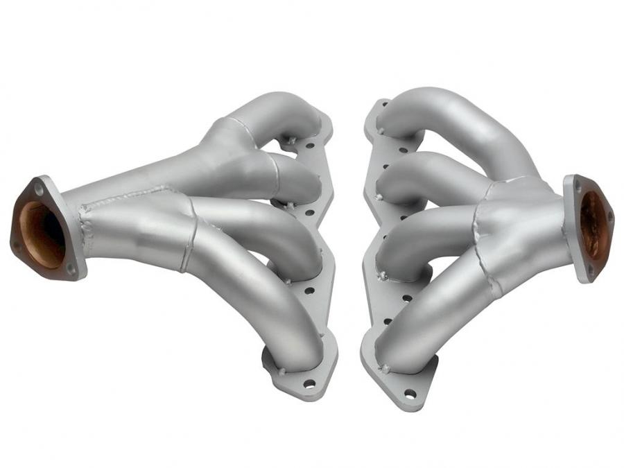 Headers that fit 427, 454, and 502 Corvettes from 1970 to 1974. Handmade and directly replace the factory cast iron manifolds. These 2" primary tube 16 gauge headers are all handmade and welded then ceramic coated and copper coated on the inside. Copper coating keeps the heat inside the tube up to 2100 degrees, which supersedes normal heat rating of Ceramic Coating at 1600 degrees. Your steering box, a-arms, frame rails, idler arm and A/C boxes all clear your new headers and even 4 speed owners, your clutch cross-shaft will clear too! With 2 1/2" Collectors exactly the same as your old Cast Iron Manifolds.