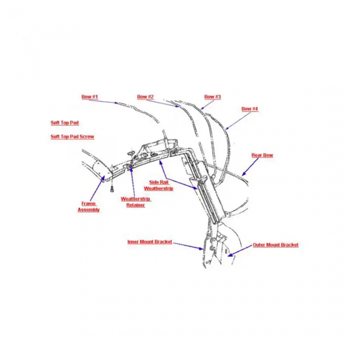 • 3rd Back From Header Bow This Corvette reproduction convertible top bow has been manufactured to original factory specifications using today's modern manufacturing techniques. You will find the fit, finish and function will work superbly for your restoration.
