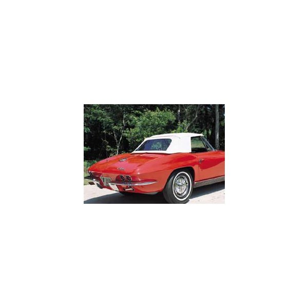 1963-67 Corvette Convertible tops are made of heavyweight 36-38 oz. vinyl with black mildew resistant backing. All seams and the clear, heavy gauge vinyl window are die-electric sealed airtight. Convertible tops are complete with pad kit, washing instruction tag, stainless steel tips, hydem strip and pull straps. For date coded top, see alternate items.