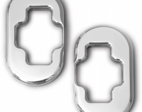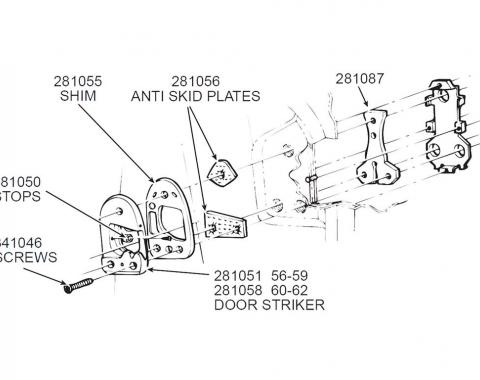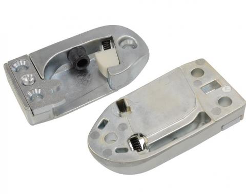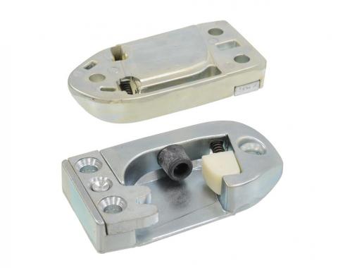 Reproduction of the original door striker plates designed for use with 1955-60 Chevrolet Bel Air, 150, 210, Nomad, Impala, Biscayne, Corvette, and El Camino models. Each striker plate is manufactured from high quality zinc die-cast…