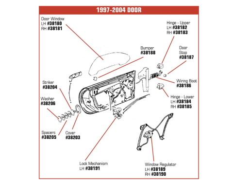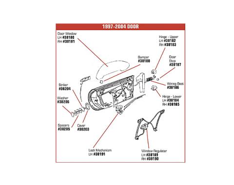 Correct reproduction of the original threaded striker washer for use on 1965-2002 Buick, Chevrolet, Pontiac, and Oldsmobile models as listed. The door lock striker washer is installed on the door jamb for either the right or left hand…
