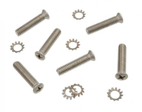 Reproduction of the original style door striker screws for use with various 1958-60 Bel Air, 150, 210, Nomad, Impala, Biscayne, and El Camino models as listed. Each set includes 6 screws. 2 sets requred for 4-door models. Used to attach…