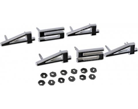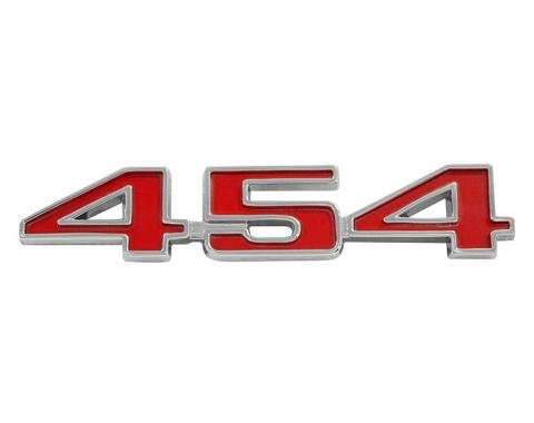 Show off your hot 454 Corvette with a pair of these beautiful 454 die cast emblems. Each set is hand buffed and polished then chrome plated and painted red with chrome boarder highlights. Includes fasteners.