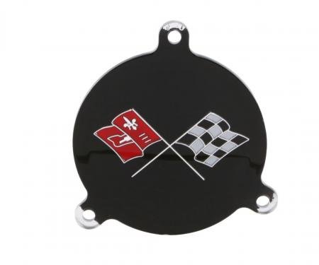 Trim Parts reproduction has silver for the letters and "V". Many service parts were released with silver in those areas, even though no records of any car having silver as original have ever been discovered! Includes fasteners and black backplate.
