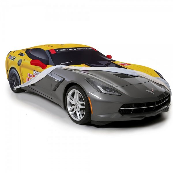 The Chevrolet Corvette C7.R is a grand tourer racing car built by Pratt & Miller and Chevrolet for competition in endurance racing. It scored its first win at the 2015 24 Hours of Le Mans in the GTE-Pro class. Coverking partnered with GM to develop this amazingly detailed Graphic Satin Stretch™ Custom Cover (GM part number 23481362) which is included in the 2016 Corvette Z06 C7.R Edition package. Give your Stingray or Z06 the Z06 C7.R racing look with this Coverking C7R photographic satin stretch car cover.