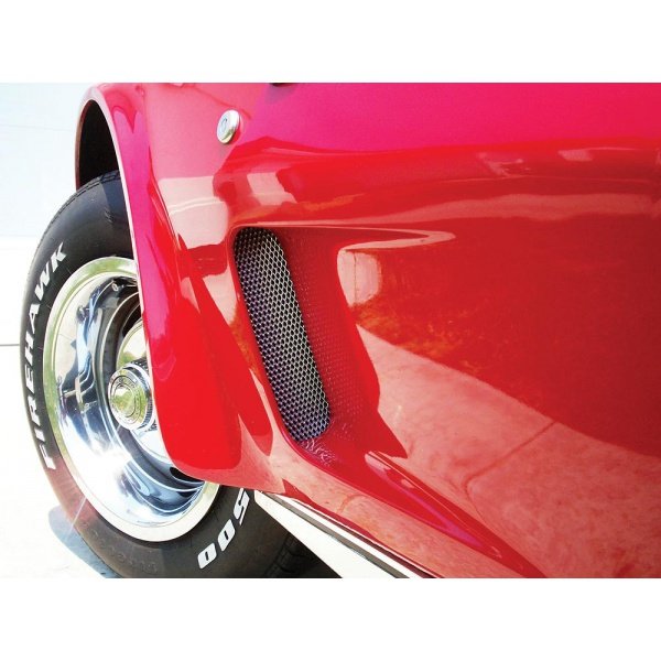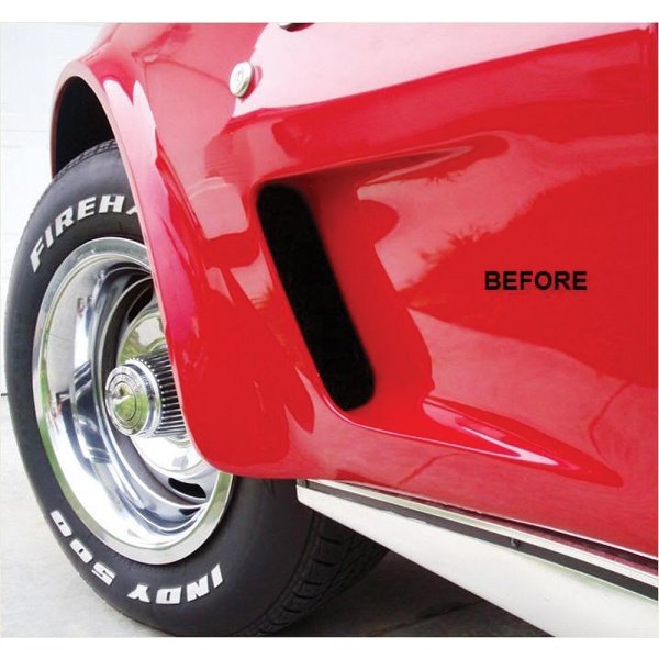 FINALLY!! An insert to fill in the blank, "black holes" in your side fender. All other years of C3's had some type of insert or grille, except the 73-79's.Transform your 73-79 Corvette with that great classic look shared by earlier and later Corvettes by dressing-up the front fender vents. Our chrome grilles are computerized WaterJet precision cut and each kit comes with everything you need for easy installation. Unlike, other aftermarket grilles, our patent pending all weather attachment process does not require any permanent modification to your body or use tape that can easily fall off. No Holes to Drill in the paint!If you want to dress up those black holes in your C3 fender vents and give your car that look that it should have had from the factory, you will love these high quality anodized aluminum chrome grilles. Take a look at the pictures of this item as they say it all.