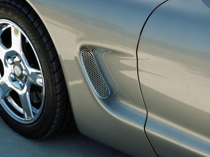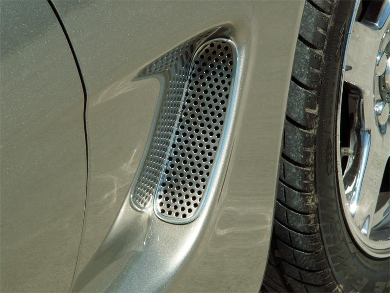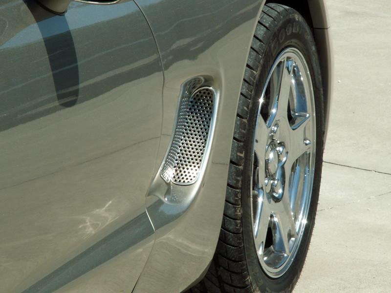 Dress up your Corvette with our Polished Stainless Steel, Perforated Side Vent Grilles. These trim pieces are designed to fit all 1997-2004 Corvettes inside the front - side fender vent opening and add a clean stylish look to your Corvette exterior. Compliments our C5 Perforated Rear Tag Back Plate - 032020.