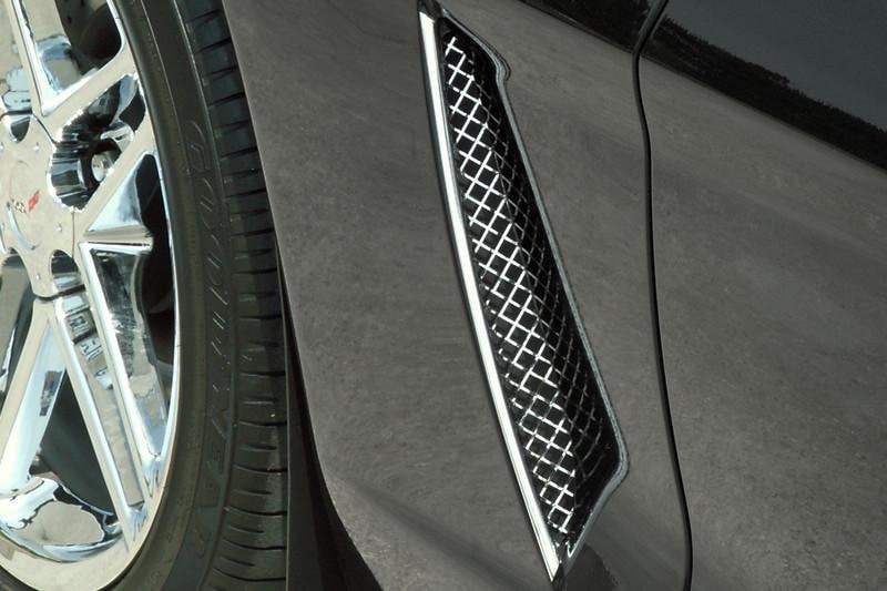 American Car Craft 2005-2013 C6 Corvette - Laser Mesh Side Vent Grilles 2Pc, Polished Stainless Steel 042053
