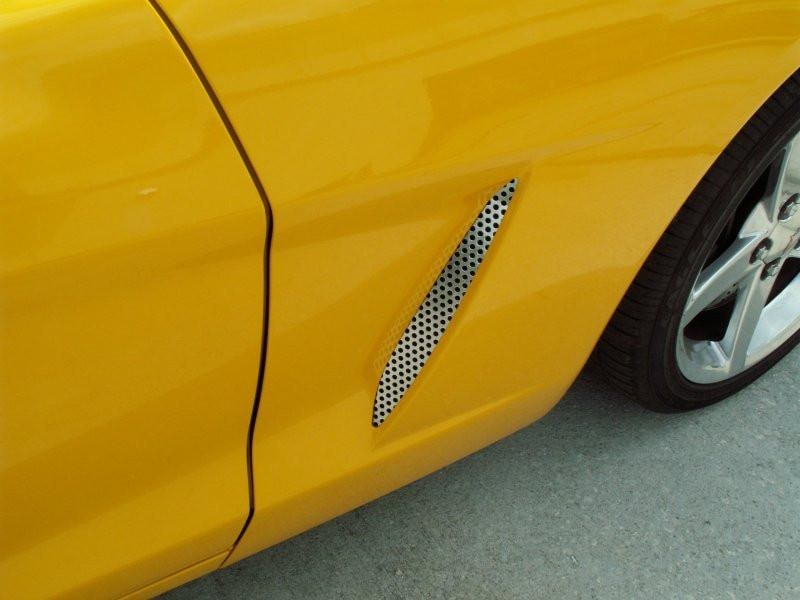 American Car Craft 2005-2013 C6 Corvette - Side Vent Grilles Perforated 2Pc, Polished Stainless Steel 042052