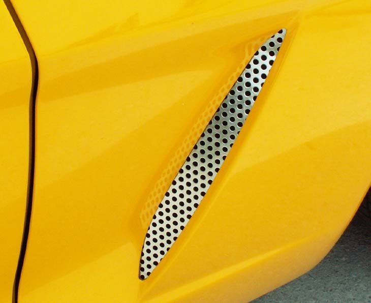 Dress up your Corvette with our Perforated Side Vent Grilles fabricated from premium stainless steel. These trim pieces are designed to fit all 2005-2013 C6 Corvettes in the side fender vents and adds a clean stylish look to your Corvette exterior. Also available in Black Stealth Stainless Steel.