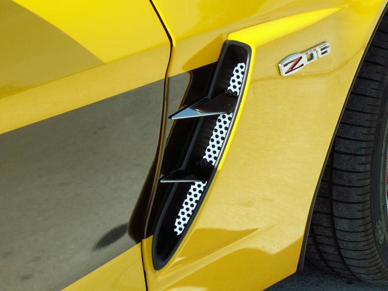 Dress up your Corvette with our Polished Stainless Steel Side Vents with Spears. These trim pieces are designed to fit the 2006-2013 Z06 Corvettes in the side fender vents and adds a clean stylish look to your Corvette exterior. Compliments our C6 Corvette Perforated Z06 Hood Vent Grille 042056.