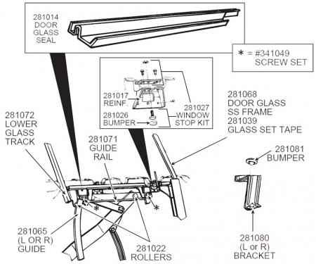 Corvette Window Glass Bearing Fastener, Front, 1968-1982: