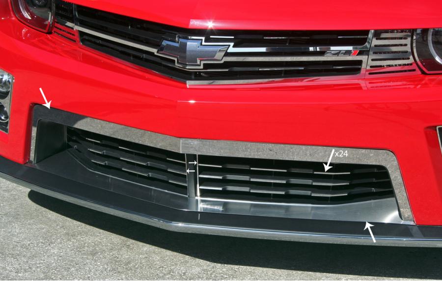 Dress up your Camaro with our polished stainless steel 926) Piece Lower Front Grille Trim Kit. These trim pieces are designed to fit on the stock ZL1 Camaro lower front grille and add a clean stylish look to your Camaro exterior.