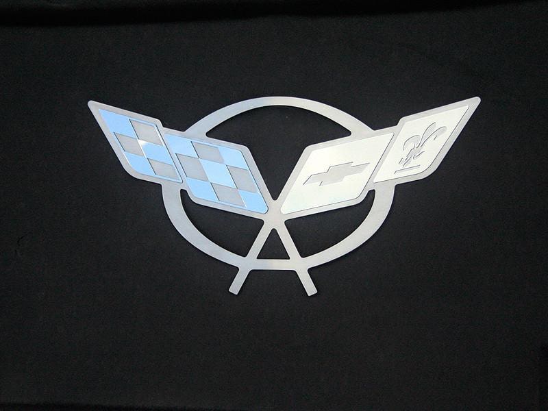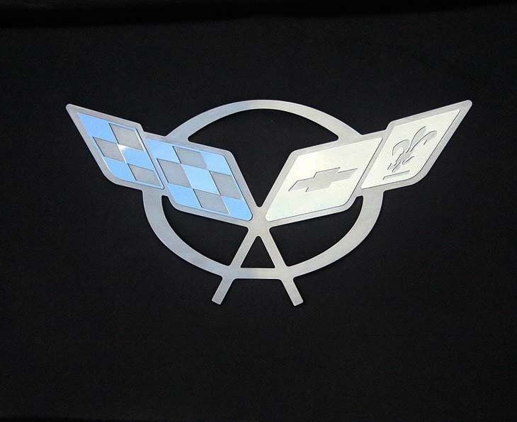 Dress up your Corvette with our Polished/Brushed Stainless Steel Hood Liner Badge "Crossed Flags" only. These trim pieces are designed to fit all 1997-2004 C5 Corvettes on the stock hood pad liner and add a custom stylish look to your Corvette engine bay. Features a multi-dimensional combination of brushed and polished stainless steel crossed flags for a custom look!