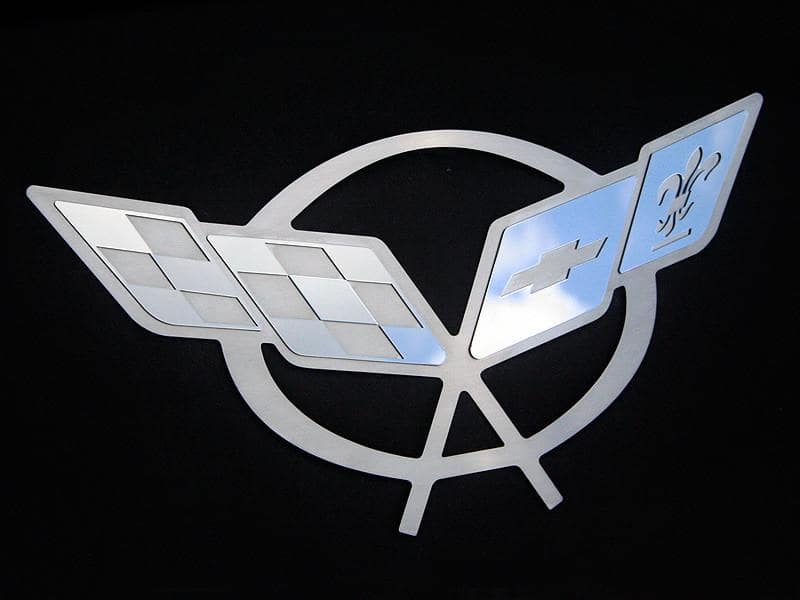 American Car Craft 1997-2004 C5 Corvette - Hood Liner Badge C5 Crossed Flags, Stainless Steel 033080: