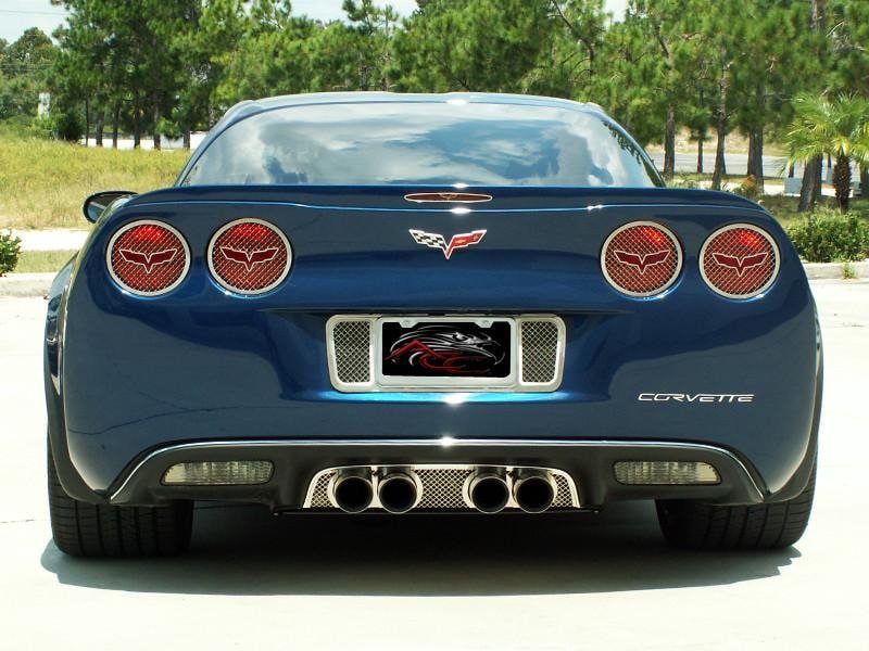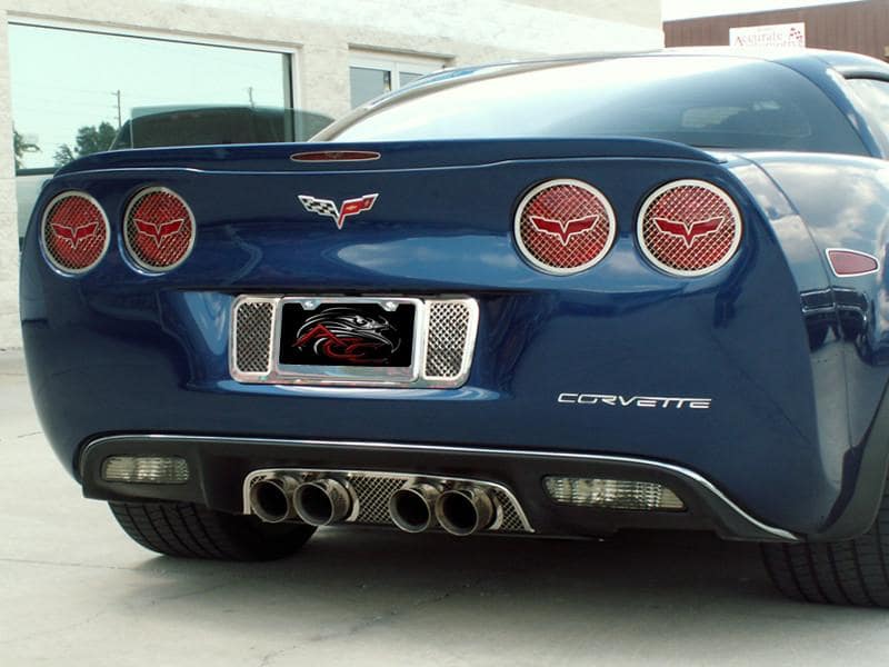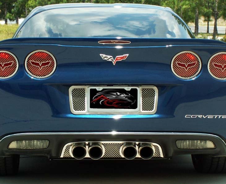 Dress up your Corvette with our Polished - Laser Mesh Stainless Steel, Tag Back. These trim pieces are designed to fit all 2005-2013 Corvettes over the rear license plate and add a clean stylish look to your Corvette exterior. Compliments all of our Laser Mesh Stainless Steel C6 Corvette products.