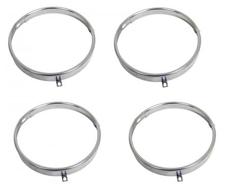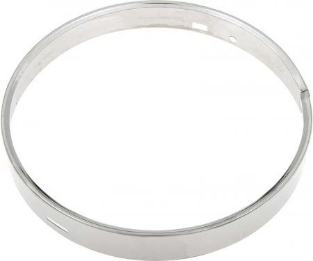 Best Quality Reproduction Headlight Ring Highly Polished Stainless Steel For Use Only With Original Clip-Together Headlight Sub-Buckets Two Required Per Car Headlight retaining rings on your 1956 or 1957 Chevy Bel Air, 150, 210, Nomad or wagon do more than just hold the head lamp into the head light bucket. The rings also give the headlight adjuster screws and spring somewhere to hold on to and do their job. Original headlight rings can become damaged from flying debris or hazy from years of use. NOTE: Make sure you have the 1956-57 Clip together headlight buckets. This ring will not work with the 1955 screw-together type.