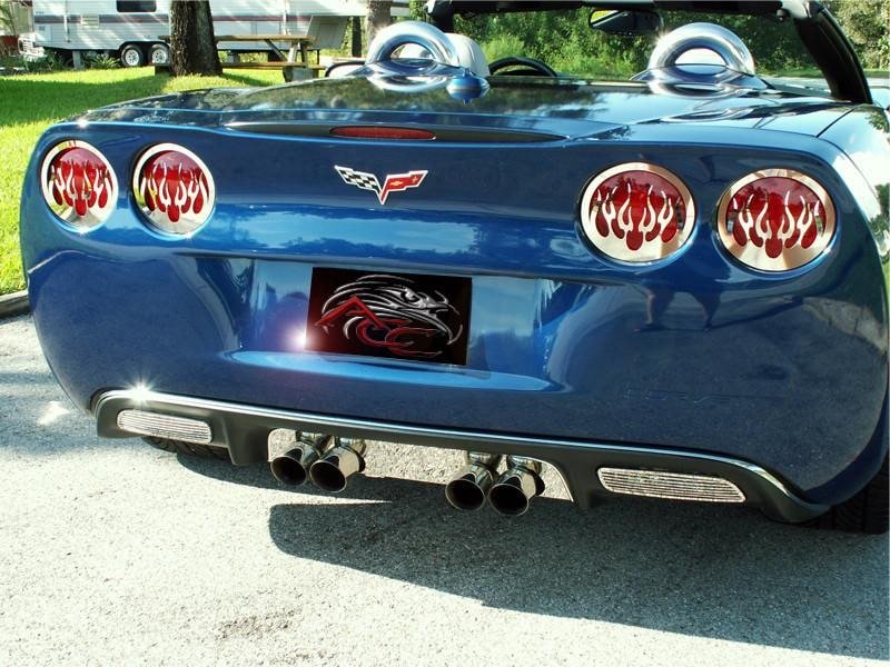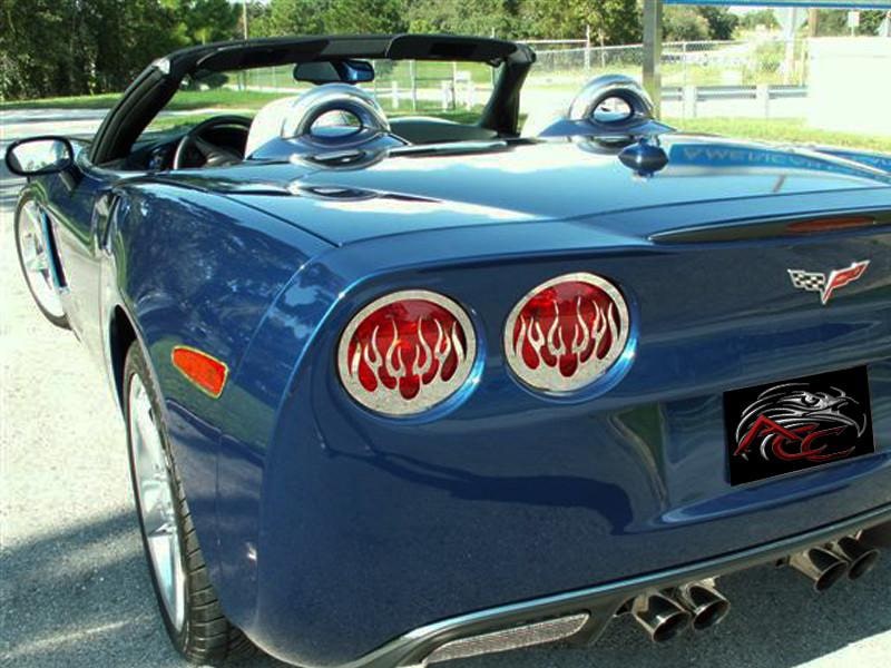 Dress up your Corvette with our Polished - Stainless Steel, Flame Taillight Grilles. These trim pieces are designed to fit all 2005-2013 Corvettes over the rear brake lights and add a clean stylish look to your Corvette exterior.