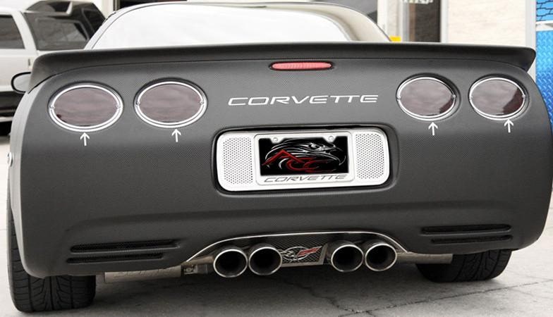 Dress up your Corvette with our polished stainless steel Taillight Trim Rings. These Corvette trim parts are designed to fit all 1997-2004 Corvettes over the rear brake lights and add a clean stylish look to your Corvette exterior. Shown with Taillight Black-out kit, not included.