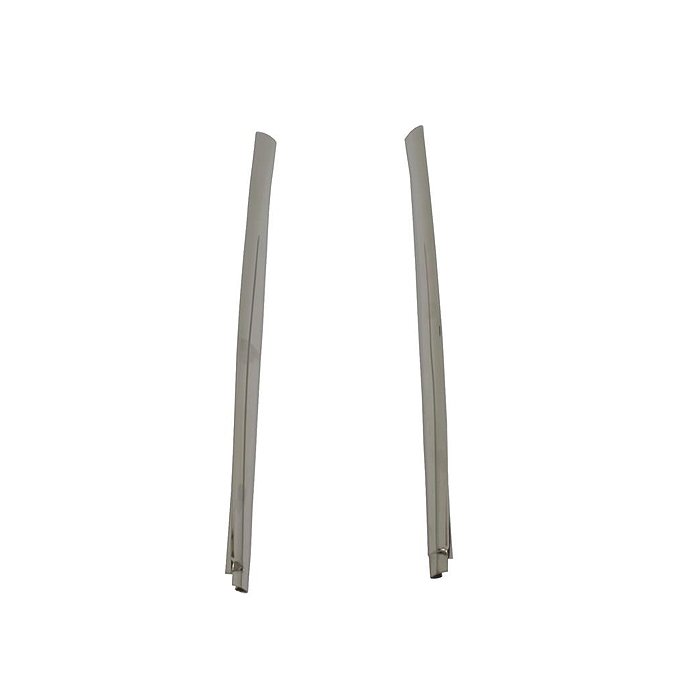 Polished stainless steel mouldings on top of the door, on the outside of the door window glass. The outer window seals staple to these. Sold in pairs