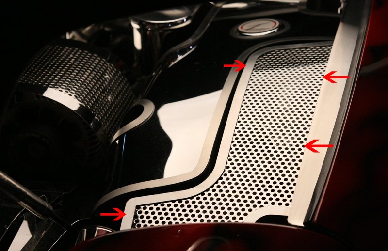 Dress up your Corvette with our Polished - Stainless Steel, Inner Fender Accent Plates. These trim pieces are designed to fit all 1997-2004 Corvettes on the inner fender and add a clean stylish look to your Corvette engine bay. Compliments our Perforated Radiator Cover - 033058.