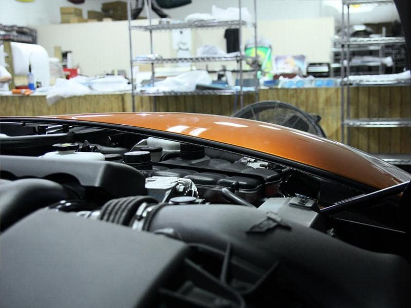 Our product line specialty extends from the interior to the exterior of your ride and into the engine bay. We also create state of the art vinyl decals and can create one of a kind custom etched windows and laser etched stainless steel products.