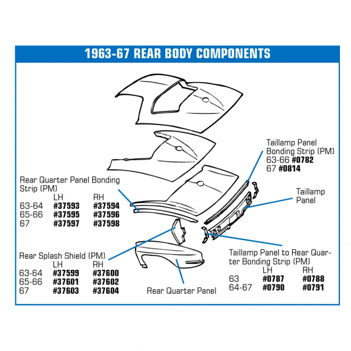 Corvette Bonding Strip, Tail Lamp Panel to Quarter Panel Right (Press Molded), Ecklers, 1964-1967