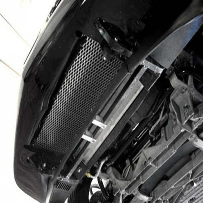 Shield your cooling system from damaging debris with this aluminum shield, grated and custom fitted to protect the area without inhibiting airflow.