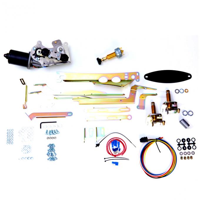 This Raingear wiper kit completely replaces your original wiper system with all new state-of-the-art components. The old wiper transmissions are replaced with new splined shafts and steel actuating arms for positive operation. The new wiper motor mounts completely under the dash, hidden from view outside or inside.