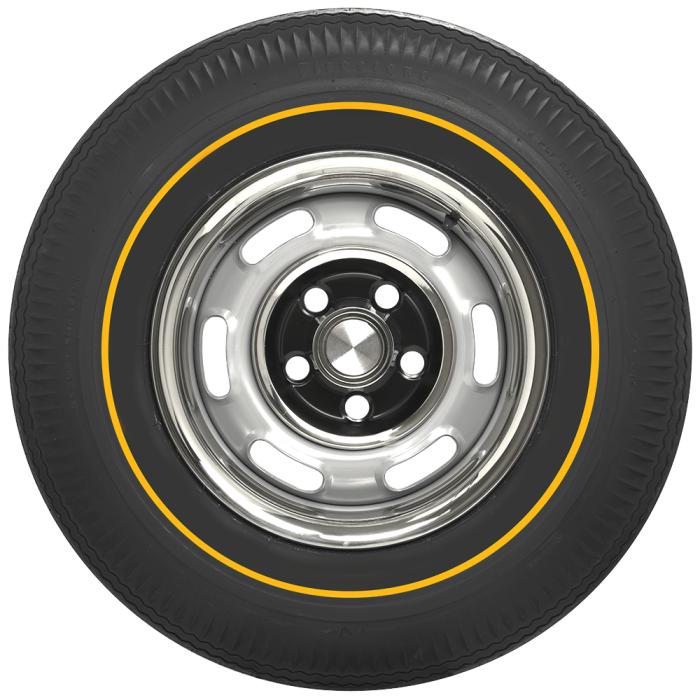 Corvette Sting Ray buyers could choose from many options, including the tires. Blackwall, narrow whitewall and goldline tires were options during the 1965 and 1966 Corvette Sting Ray production years. Goldline may also be referred to as goldwall or gold stripe tires. These tires are available in authentic Firestone, BFGoodrich and Goodyear brands in the original 775-15 bias ply size, and we also produce a modern radial BFGoodrich 205/75R15 with a 3/8-inch gold line.