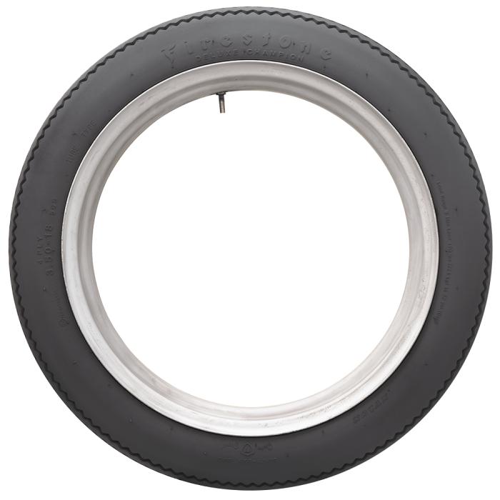 Like many of the tires we offer, Firestone Deluxe Champion Motorcycle tires serve two purposes. It's an authentic tire for American motorcycle restorations from the 1930s and '40s, and it also appeals to custom motorcycle builders seeking the vintage look. The deep tread and smooth sidewall with raised black Firestone lettering is perfect for many styles of motorcycles, from stock Harley Davidsons to modified Honda, BSA, Triumph and many more! Restored classics, choppers, bobbers, cafe racers and much more. This tire covers it all and is available in seven sizes to fit 16-, 18- and 19-inch wheels. Sometimes called Firestone Champion Deluxe in other parts of the world, these tires are becoming insanely popular with custom bike builders everywhere.