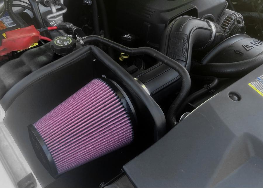 Take the performance of your vehicle to the next level with the addition of Flowmaster's new Delta Force Performance Air Intake system for 2009-2015 GM Sillverado/Sierra 2500HD/3500HD with the 6.0L engine. The Delta Force system contains an ultra-trick looking, custom molded black Cross-Linked Polyethylene (XLPE) high-flow intake tube, black anodized aluminum fittings, high quality reinforced silicone couplers and all stainless steel hardware for long life and a custom look. Other features include a large diameter high-flow conical shaped 8-layer cotton gauze air filter, which traps more dirt than typical 6-layer designs, a custom-fit black powder-coated air dam with attachment brackets to securely mount the system in place along with soft bumpers to eliminate any metal to metal contact under the hood. This Performance Air Intake system is a great addition to an application that has a performance exhaust and tuner.