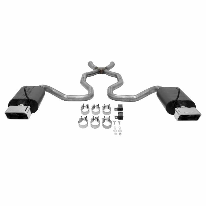 Flowmaster's Force II Crossmember-Back system for the 1970-1973 Chevrolet Corvette is perfect for the person looking for a moderate exterior and mild interior exhaust tone, with all of the performance benefits that you would expect from Flowmaster. This bolt-on Dual Out Rear system for the 5.7L V8 features 50 Series Delta Flow mufflers, a Scavenger X-pipe assembly and 2.25 in. tailpipes. Like all Flowmaster systems, the pipes are all mandrel bent to reduce any restrictions and maximize performance. The system finishes with rectangular polished 304S stainless steel tips that exit in the factory cutout bezels. The exhaust system is manufactured out of 409S stainless steel and is covered by Flowmaster's Lifetime Limited Warranty. Designed for an easy fit, this system includes all necessary parts and hardware for installation.