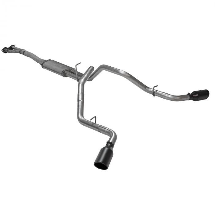 - Includes two large 4.5-inch black ceramic coated tips exiting out each side of the truck for an aggressive look