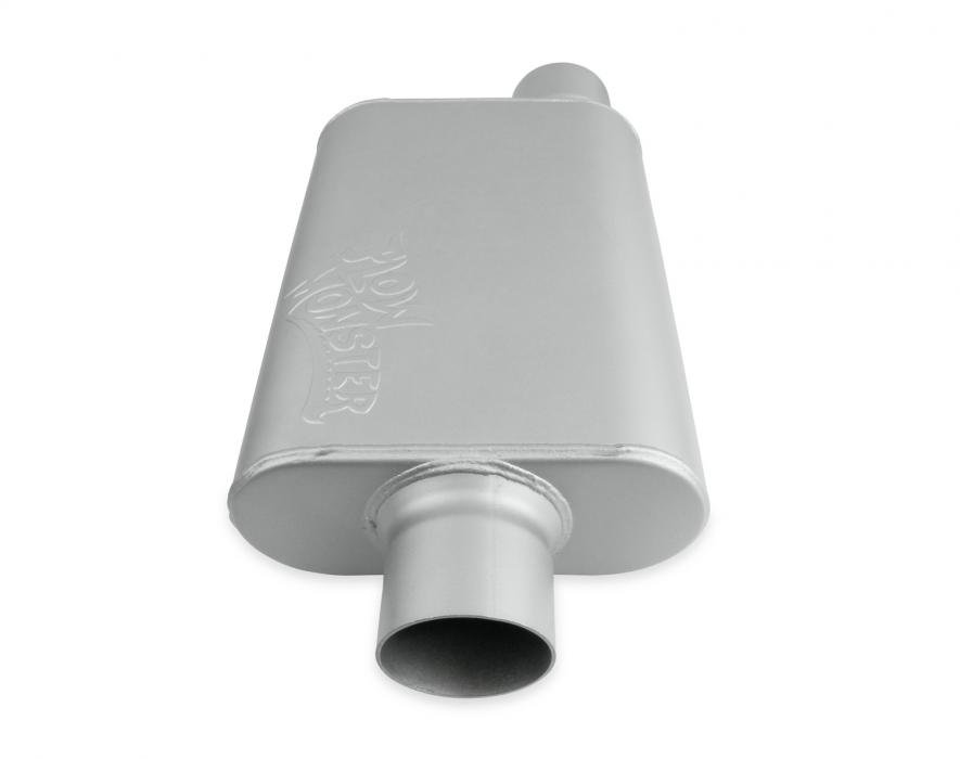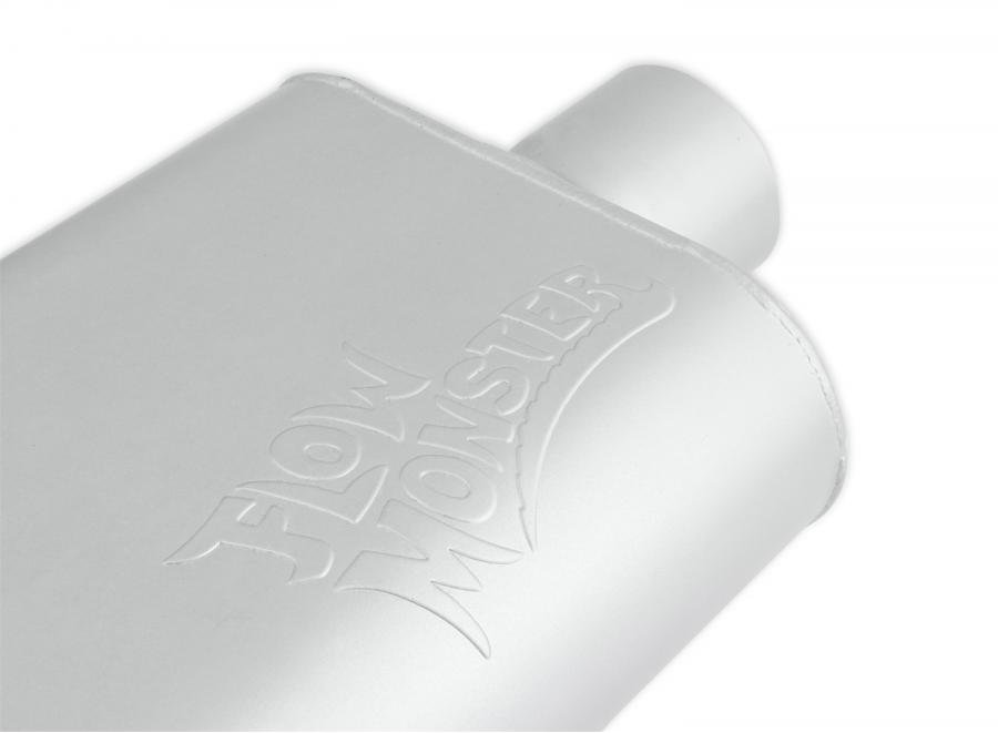 Unleash your Monster with FlowMonster chambered mufflers. Hidden beneath your ride lies a powerful creature destined to dominate. FlowMonster chambered mufflers create an aggressive exhaust note giving a powerful voice to your car/truck/SUV. FlowMonster mufflers are constructed of 16-gauge aluminized steel and are 100% MIG welded for maximum strength and durability. The chambered design cancels out unwanted frequencies with no packing producing an aggressive exhaust note that will not change with time. FlowMonster mufflers are coated with high heat resistant silver paint for an aggressive look under your car. Here the Roar with FlowMonster!