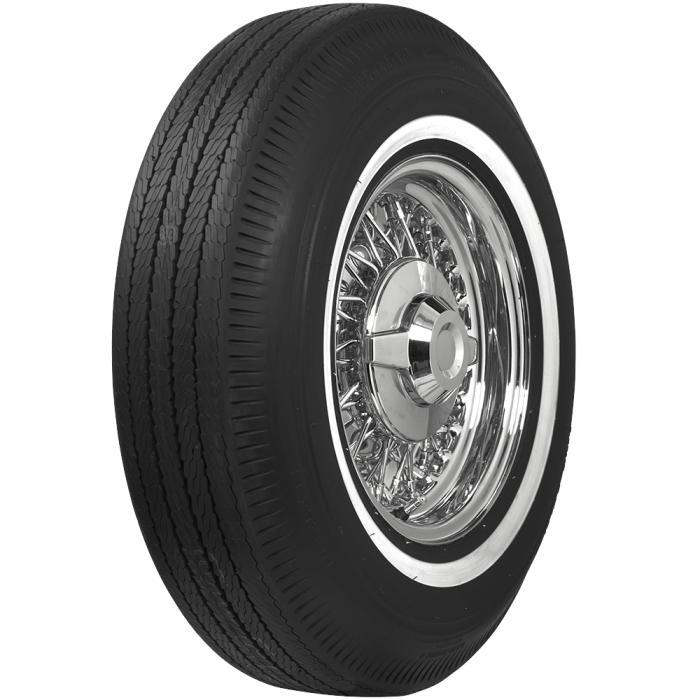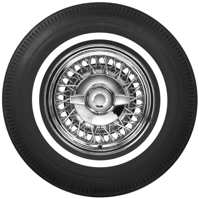 This product features a genuine narrow whitewall sidewall style. This means that the bright white rubber is added directly to the tire sidewall during initial construction of the carcass, resulting in a truly integrated, high-quality product after vulcanization. When we reference "narrow whitewall" tires, we typically mean a whitewall that measures less than two inches, but it can also mean a whitewall that does not reach all the way into the bead. Narrow whitewall tires are popular for many cars built in 1960's all the way into the 1990's.