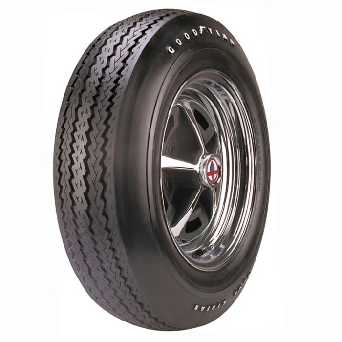 Goodyear Blue Streak tires have a storied past in the world of high performance muscle cars, pony cars and race cars. This Goodyear Blue Streak offers a very specific fitment as its 695-14 bias ply tire size lends itself to the 1966 Shelby GT350. This specific tire features accurate lettering and the exact tread pattern that rolled beneath the famous Shelby Mustangs of 1966. The tire features a four ply construction with nylon cord material.