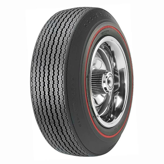 The Goodyear Speedway Wide Tread F70-15 red stripe tire is a special tire, designed to fit the classic Chevrolet Corvette. Specifically, this bias ply tire fits 1968 and 1969 Corvette, and it features a special two ply nylon construction, instead of the standard polyglas construction that other Goodyear tires featured during this time frame. The Poly/fiberglass construction didn't prove to be beneficial with the four wheel independent suspension beneath the Corvette, so Goodyear developed this tire without the fiberglass belting. The sidewall markings, .350-inch redline and tread pattern is authentic, and this non-belted tire is a proper fitment for your 68-69 Corvette.