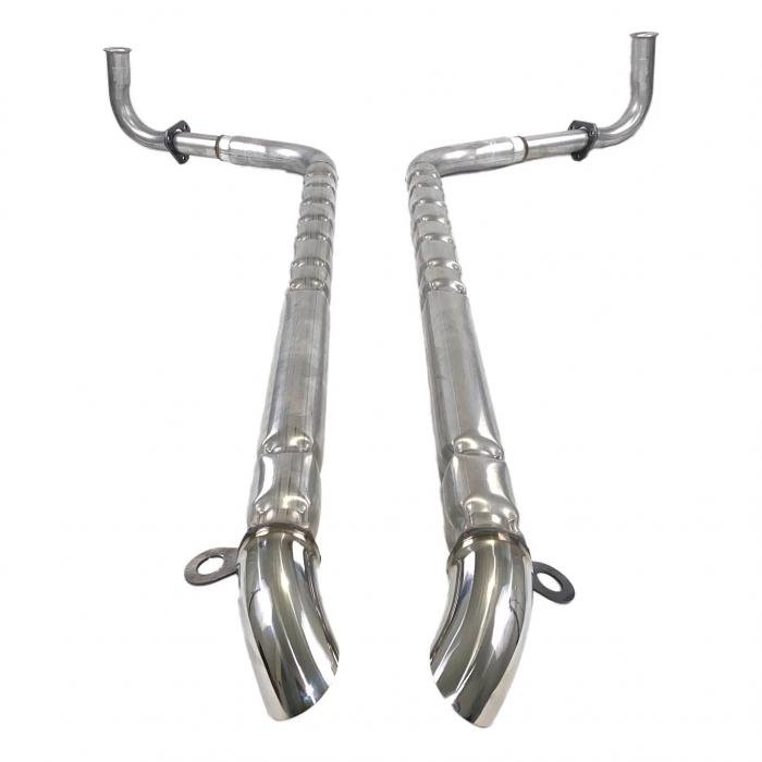 These are direct OEM replacements for C2 sidepipes. 100% made from the highest quality materials available. This set includes our standard 2" HighFlo Performance inner baffle, true 304 stainless tips, and made with heavy duty 14 and 16 gauge material. We stamp our own brackets correctly how they were and give you a perfect fit for your C2 corvette. We are proud to be the home of the "true inner baffle" just how GM made them back in the day. We have many variations to choose from for people that want a bit more out of there sidepipes like larger inner baffles of 2.25" and 2.5", and even chrome tips and full 304 stainless systems as well. From C2 to C7 corvettes whether it's small block or big block we have you covered at HighFlo Performance!